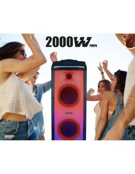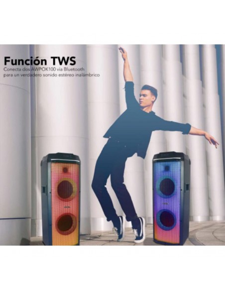 - Karaoke - Radio FM - Puerto USB - Bluetooth - Función TWS - Incluye micrófono
