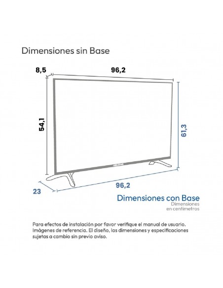 - 96.2 x 54.1 x 8.5 (Sin base)