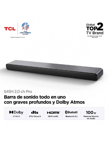 Barra de Sonido TCL 40 Watts RMS Inhalámbrica 2.0.2 Canales S45H