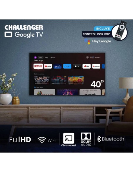 Televisor Challenger 40 pulgadas Led Full HD Google TV LED 40TG81 BT GOOGLETV T2