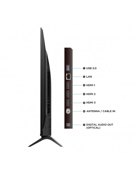 - Asistente de voz - Procesador TC8000 Platform - Memoria Rom 16Gb - WIFI 5 - Aplicaciones Preinstaladas (Netflix, YouTube, Prime video, HBO MAX, Disney+, Pluto Video, TCL Channel, Google play Store) - Bluetooth