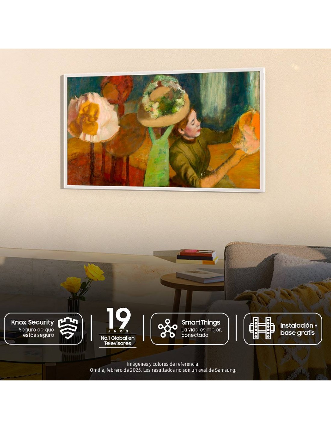 El Samsung The Frame 65” QLED 4K transforma tu hogar en una galería de arte al combinar diseño elegante y tecnología de última generación. Su estilo tipo cuadro con el Marco Moderno en color caoba de 65” se integra con la decoración de cualquier espacio, mientras el Modo Arte y la Art Store permiten mostrar miles de obras o tus fotografías personales cuando no lo usas como televisor. La pantalla mate antirreflejo elimina brillos y ofrece imágenes realistas desde cualquier ángulo. Con tecnología QLED 4K, procesador NQ4 AI Gen2, Quantum HDR y Dual LED, cada escena se disfruta con colores vibrantes, negros más profundos y un contraste optimizado. Además, cuenta con funciones avanzadas como Motion Xcelerator 144Hz, 4K AI Upscaling y EyeComfort Mode. Para los gamers, integra FreeSync Premium, ALLM, Game Motion Plus y VRR que elevan la experiencia de juego. En audio, disfruta un sonido envolvente con Dolby Atmos y OTS 3D, reforzado por el exclusivo Parlante Portarretrato Smart Music Frame, que además decora y se sincroniza perfectamente con el televisor. Con Smart TV Tizen™, Bixby, AirPlay, SmartThings, conectividad completa (HDMI 4K 144Hz, USB-C, Wi-Fi 5, Bluetooth 5.3, eARC) y el sistema One Connect, este TV es la opción ideal para quienes buscan estilo, innovación y entretenimiento premium.
