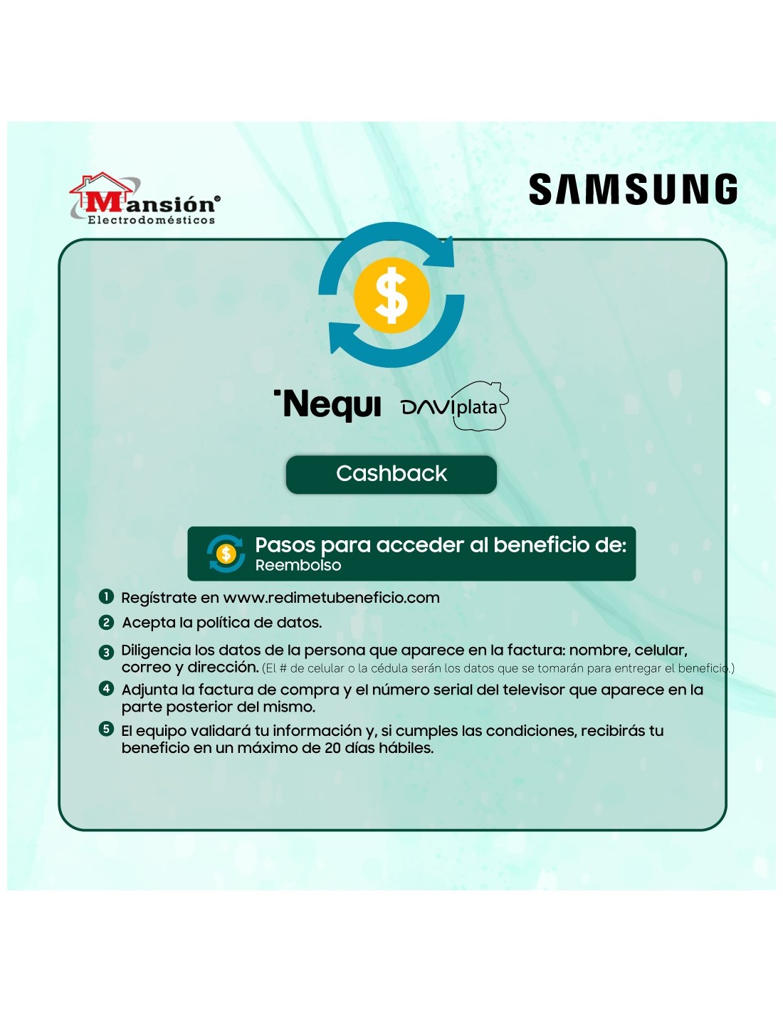 Con Samsung Vision AI, Bixby actualizado, Modo AI, SmartThings, AI Energy Mode y el nuevo One UI Tizen con 7 años de actualizaciones, tu televisor se convierte en un centro inteligente más intuitivo, eficiente y conectado para el hogar. Una experiencia premium diseñada para elevar tu entretenimiento y tu vida diaria.