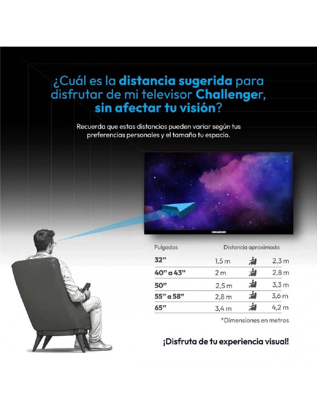 Fabricado en Colombia con componentes importados, este televisor combina eficiencia, durabilidad y un diseño moderno de biseles delgados, adaptable a cualquier espacio.