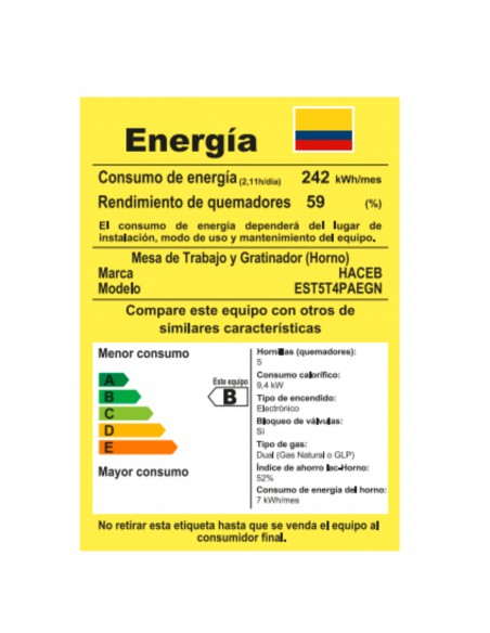- Consumo Mínimo Energético: 242 Kwh/Mes