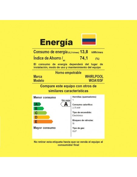 Horno de Empotrar Whirlpool a Gas Acero Inoxidable Negro WOA105F