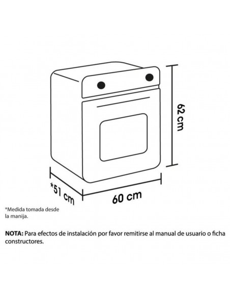 - Sistemas de seguridad:Termopar - Gratinador - Iluminación interna - Tecnología Low E - Múltiples posiciones del horno - Puerta del horno desmontable