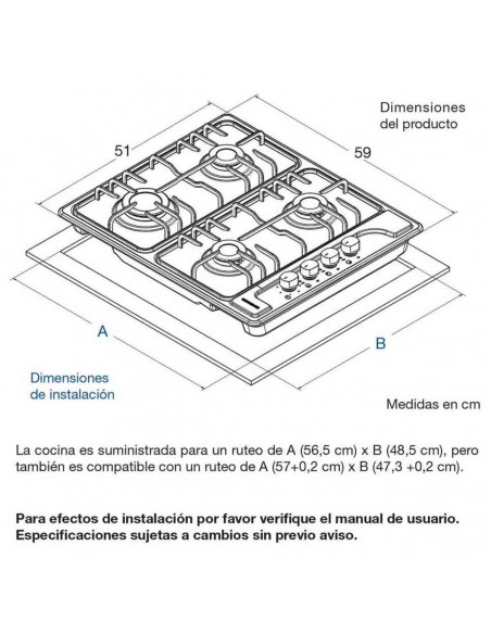 La Cubierta Empotrable Challenger 59cm 4 Puestos Inox | SP 6040 EI es de mayor durabilidad y resistencia, parrillas en platina con 8 puntos de apoyo.