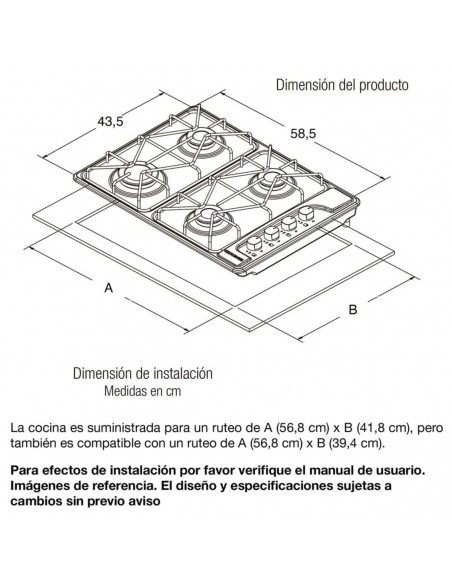 Cubierta Empotrable Challenger 58.5cm a Gas 4 Puestos Inox | SP 6043 de mayor durabilidad y resistencia, parrillas en alambron con 8 puntos de apoyo