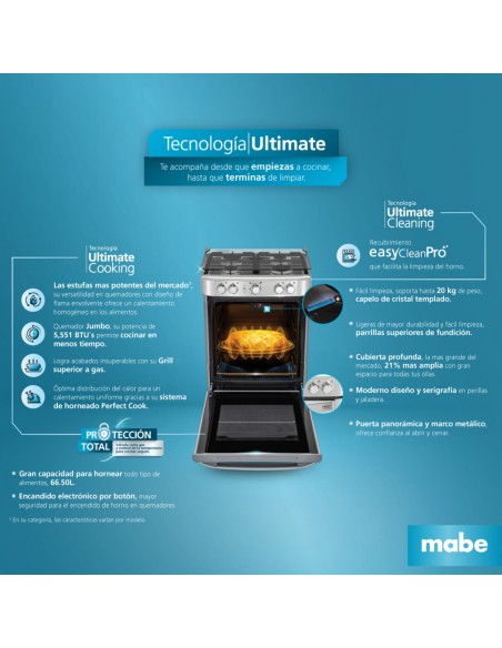 Estufa de Piso Mabe 4 Puestos Gas Natural Acero Inoxidable | EMC6050NFX0 cuenta con la mejor tecnología, que te acompaña en cada momento. Desde que empiezas a preparar tus alimentos, hasta que terminas de limpiar.