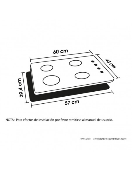 La Cubierta Empotrable Haceb Inox 60X43 cm Gas Natural ASL CG 60 43 CRISTAL ML GN con un vidrio de 8mm de espesor que aporta robustez y seguridad. Cuenta con 4 fogones en diferentes tamaños que se acomodan a los diámetros de tus ollas y pesos de tus preparaciones y 1 fogón rápido 35% más potente que agiliza los tiempos de cocción . Parrillas en hierro fundido para más estabilidad y seguridad. Es de muy fácil limpieza gracias a sus perillas removibles. Enciende solo con girar la perilla.