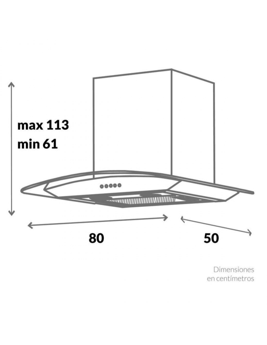 - Iluminación LED - Motor con 3 velocidades - Control digital frontal tipo push button - Filtros atrapagrasa en aluminio