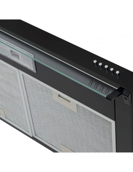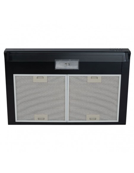 La Campana Challenger 76cm Horizontal 3 Velocidades Negra CX 4572 NEGRA cuenta con motor con tres velocidades de operación que garantiza una evacuación eficaz de vapores y olores;Control manual frontal tipo push button, que permite seleccionar las diferentes velocidades de extracción y la iluminación de manera independiente; Bombillo halógeno tipo bulbo que proyecta en la zona de trabajo una luz adecuada y agradable; Filtros atrapagrasas en aluminio con marco y doble seguro fácil de montar y lavar; Filtros de carbón activado tipo textil que retiene los olores; Uso en cocinas de 4 y 5 puestos con frente máximo de 76 cm.