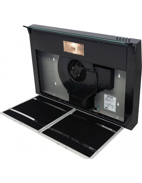 - Bombillo halógeno tipo bulbo - Motor con 3 velocidades - Control manual frontal tipo push button - Filtros atrapagrasa en aluminio