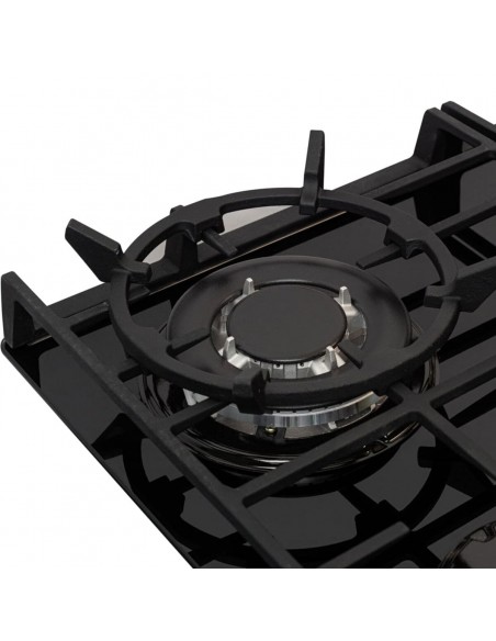 Estufa de empotrar Cristal Squadra 65 x 52 cm-SQ 6767 AE, elegante y eficiente. Vidrio negro, cuatro quemadores SABAF, parrillas de hierro fundido, perillas metálicas y encendido electrónico. Clasificación energética B, consumo 317 kWh/mes. Accesorio WOK incluido.