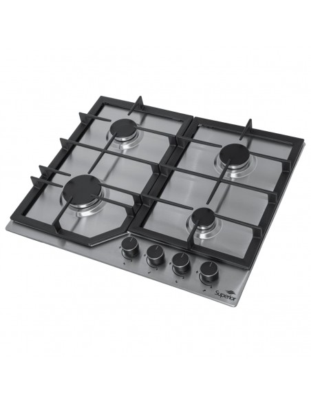 Cubierta Empotrable Superior 4 puestos 60 cm Acero Inoxidable CI 8030-4 con parrillas Fabricadas en Hierro Fundido con diseño que provee estabilidad, seguridad y resistencia.