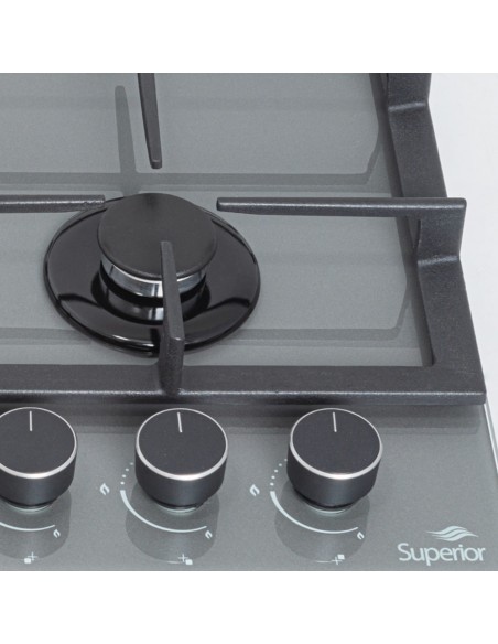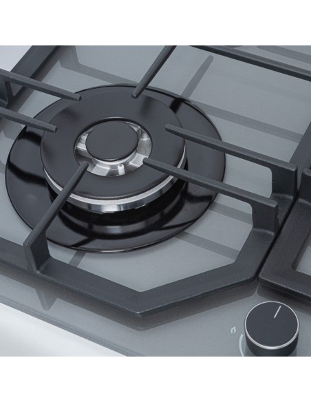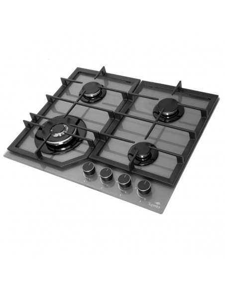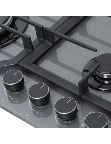 Cubierta Empotrable Superior 4 puestos 60 cm Mando Frontal Gris CV 8031-1G con vidrio templado.