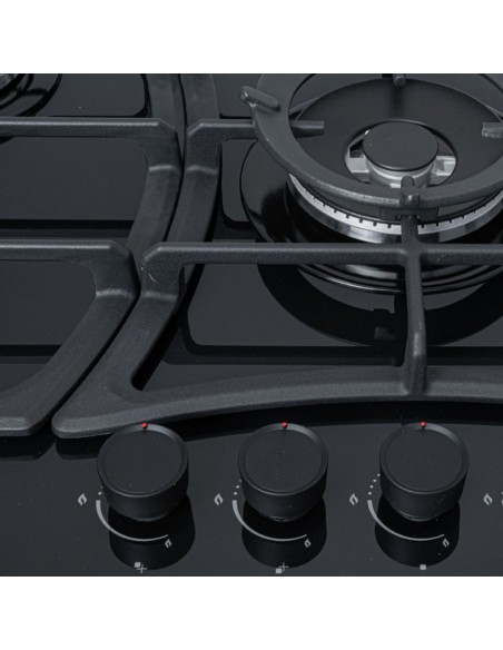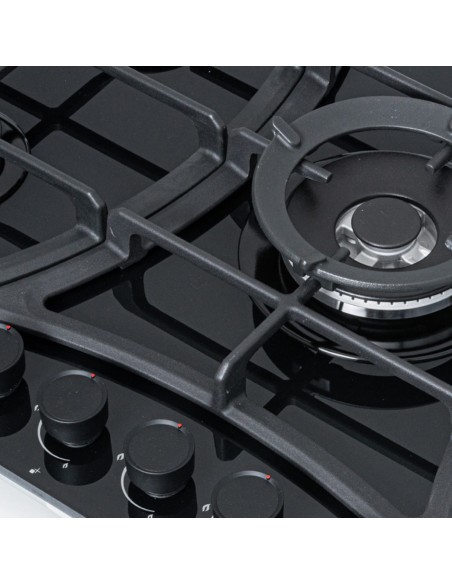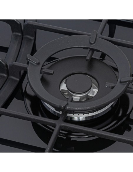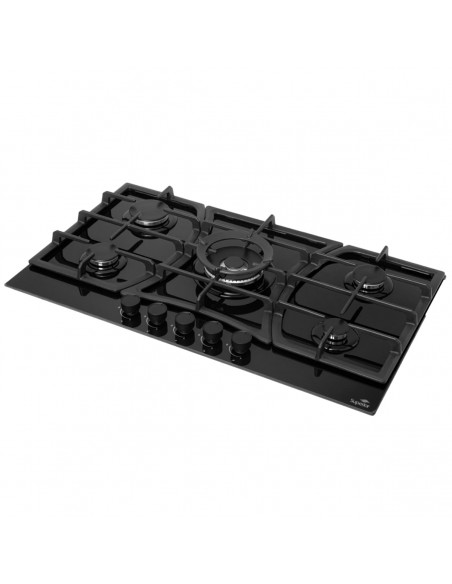 Cubierta Empotrable Superior 5 puestos 90 cm Mando Frontal Negra CV 8331 -10N en vidrio templado negro.