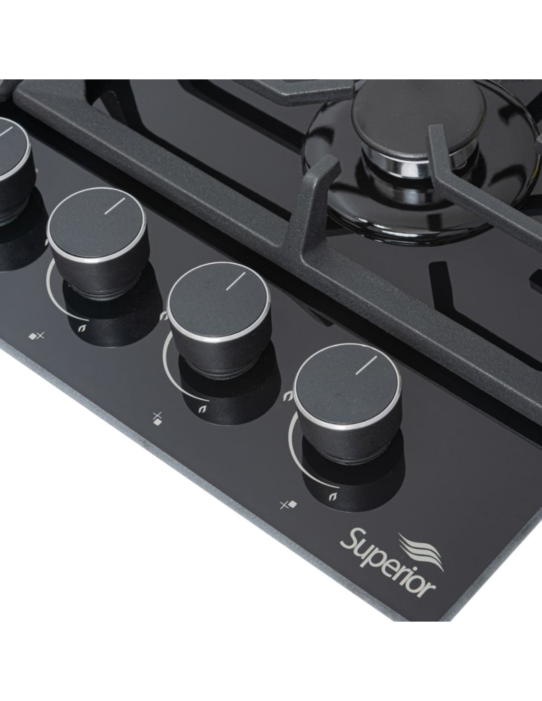 Cubierta Empotrable Superior 4 puestos 60 cm en Vidrio Mando Frontal CV 8031-2N en vidrio templado color negro