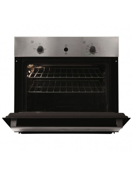 Iluminación interior Perillas con diseño ergonómico Parrilla porcelanizada (x2) Manija negra con soportes que minimizan el calentamiento de la misma Sistema de seguridad que evita el escape de gas en ausencia de llama (termopar) Vidrio interno puerta fácilmente desmontable para una mejor y completa limpieza Doble vidrio de seguridad en la puerta para mantener baja temperatura en la zona frontal del horno Cavidad interna cubierta con esmalte Crystal Clean con propiedades antiadherentes que permiten una fácil limpieza Quemador de alta efciencia térmica que permite el ahorro de gas ,