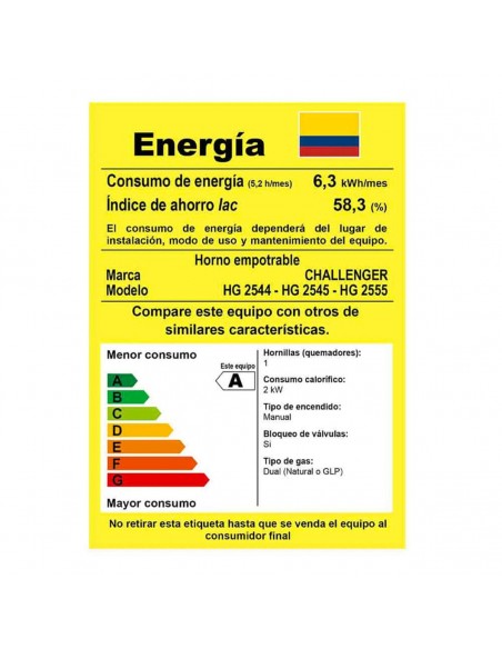 Horno Challenger Empotrar Mixto Acero Ne - HG 2555 Iluminación interior. Perillas con diseño ergonómico. Manija negra con soportes que minimizan el calentamiento de la misma. Sistema de seguridad que evita el escape de gas en ausencia de llama (termopar). Vidrio interno puerta fácilmente desmontable para una mejor y completa limpieza. Doble vidrio de seguridad en la puerta para mantener baja temperatura en la zona frontal del horno. Cavidad interna cubierta con esmalte Crystal Clean con propiedades antiadherentes que permiten una fácil limpieza. Quemador de alta eficiencia térmica que permite el ahorro de gas. Parrilla porcelanizada. Encendido electrónico. *Especificaciones e imágenes sujetas a cambios sin previo aviso Compras Seguras Online en Grupo Mansión. Encuentra más productos relacionados en la categoría Hornos de Empotrar Para conocer más sobre el producto haz clic aquí