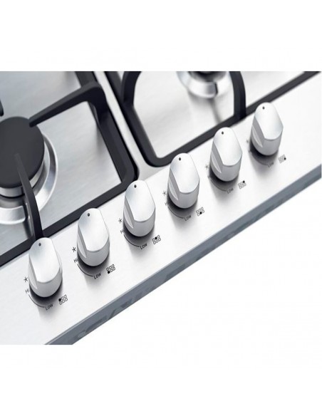 Única con 6 quemadores, cubierta de Acero Inoxidable y encendido electrónico. Incluye adaptador para WOK. Además, gracias a su gran superficie de cocinado con mayor espacio entre cada quemador podrás cocinar más platillos al mismo tiempo.