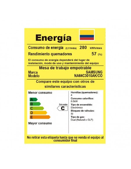Cubierta de Empotrar Samsung 4 Puestos Gas Natural Vidrio Templado Negro NA64C3010AK/CO