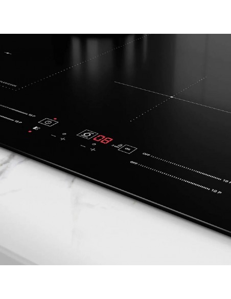 La cubierta de inducción Whirlpool de 77 cm combina diseño moderno, eficiencia y tecnología avanzada para transformar tu cocina. Equipada con 4 zonas de calor, incluye una zona FlexiCook que permite cocinar en recipientes de distintos tamaños, ideal para preparar múltiples recetas al mismo tiempo. Sus 4 funciones automáticas (derretir, mantener caliente, hervir y cocción lenta) ofrecen resultados precisos y sin complicaciones. Su panel Touch frontal con display digital es intuitivo y elegante, con indicadores de superficie caliente y zona activa para mayor seguridad. Fabricada en vidrio vitrocerámico negro, esta cubierta empotrable es perfecta para instalar sobre horno. Funciona con energía eléctrica 220V y alcanza hasta 7200W de potencia, garantizando un calentamiento rápido y uniforme. No incluye plug. Producto original Whirlpool, fabricado en la región EMEA y con 1 año de garantía.