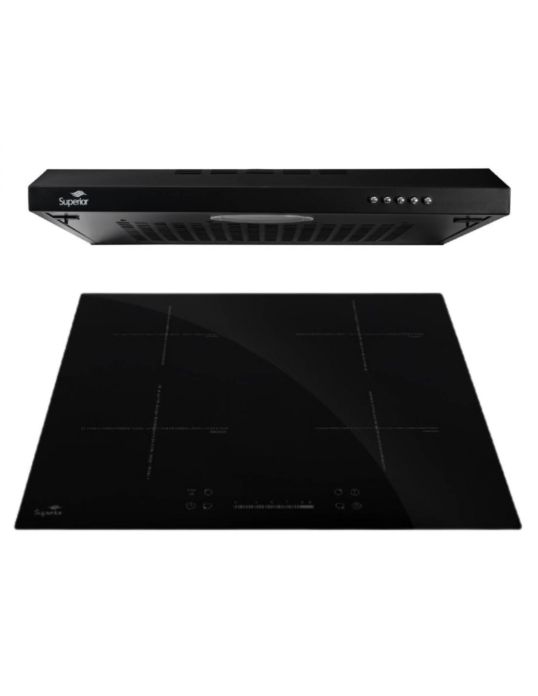 Combo Superior Cubierta de Inducción 4 puestos Negra CE-8521 1 + Campana de Pared 3 velocidades CN 8051-2