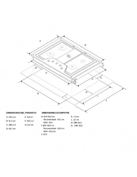 - 1 Quemador Profesional de Doble Anillo - 1 Quemador a Fuego Lento Even-Heat - 3 Normales