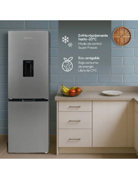 Descubre la Nevera Challenger 356 Litros Brutos Bottom Freezer CR 325, el refrigerador No Frost ideal para tu hogar que combina gran capacidad, eficiencia energética y diseño moderno en acabado inoxidable. Con un volumen bruto de 325 litros y práctico sistema Bottom Freezer (congelador inferior), te permite organizar mejor tus alimentos y acceder fácilmente a lo que más usas en el día a día.