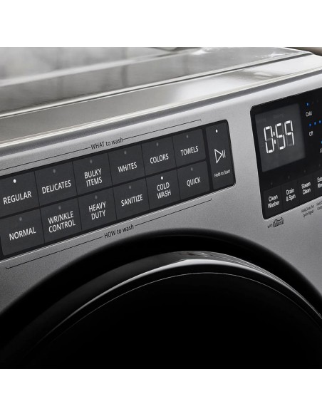 La Lavadora Whirlpool 21 Kg Carga Frontal Gris de alta eficiencia incluye un ciclo de lavado rápido, opción Tumble Fresh para mantener la ropa fresca al interior de la lavadora, y función Steam Clean para una remoción de manchas más fácil. Cuenta con tecnología Automatic Load Sensing que detecta el tamaño de la carga para utilizar sólo la cantidad de agua necesaria y panel digital "Qué y Cómo" lavar que permite personalizar los ciclos para un mejor desempeño.