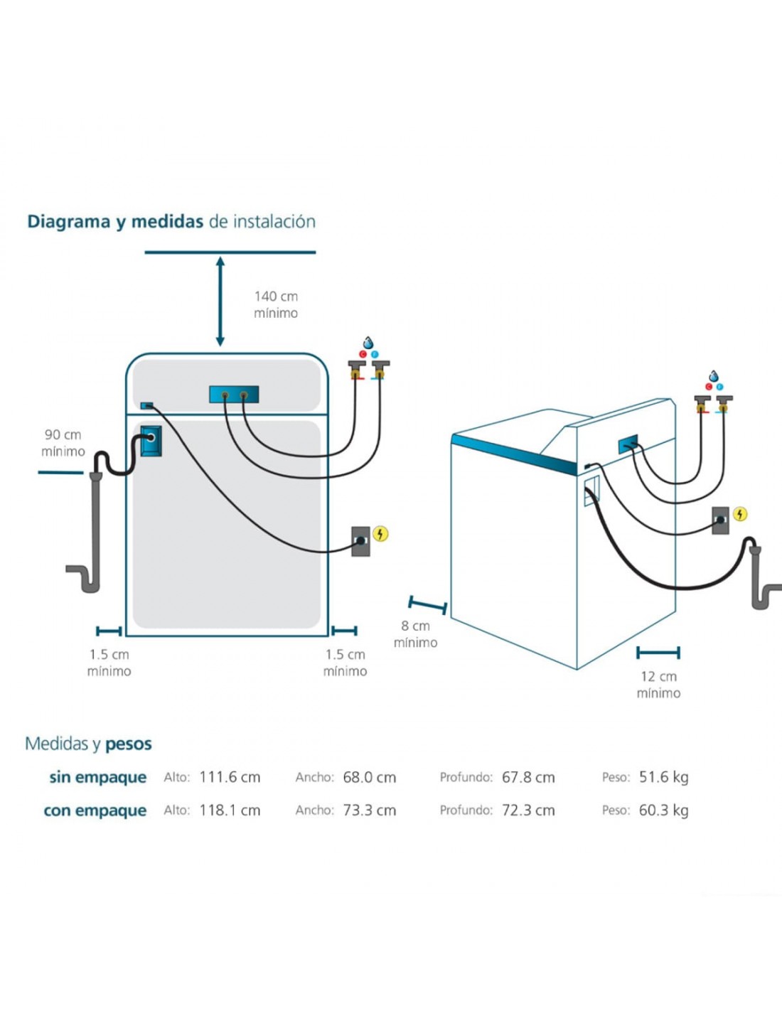 - Dimensiones Netas (An x Al x Pr) cm