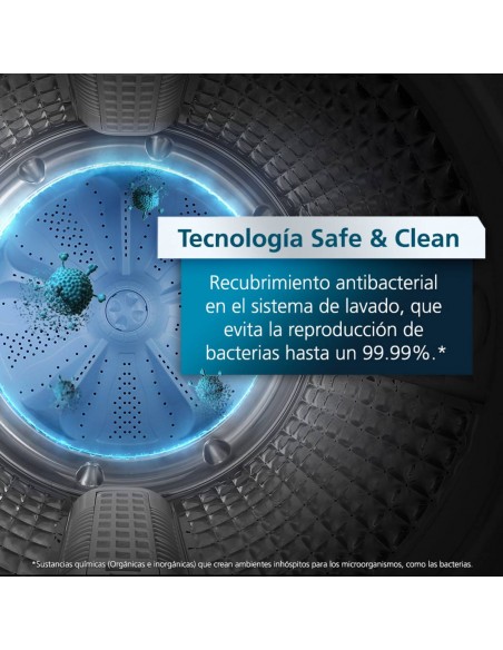 La lavadora automática de carga superior con Doble Filtro ZeroFuzz elimina pelusas y evita su regreso a las prendas, asegurando ropa más limpia. Su diseño Clean Care ofrece un lavado delicado para mantener la ropa como nueva. Con el Ciclo Next Day, seca hasta 1.5kg de ropa sintética en solo 6 horas gracias a su eficiente centrifugado. Las Ranuras Air Vent+ previenen moho y bacterias, mientras que la Tecnología Safe & Clean con recubrimiento antibacterial elimina hasta el 99.99% de bacterias. La tapa Soft Close y el Id System optimizan el proceso de lavado, asegurando seguridad y máxima limpieza. Con capacidad de 16kg y 9 programas automáticos, es ideal para tu hogar.