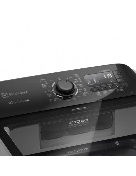La lavadora Electrolux Perfect Care LS21I con tecnología Power Jets protege tus prendas al reducir el desgaste de telas y colores. Su innovador diseño con panel digital Time Control optimiza el ciclo de lavado, mientras que su función Jet&Clean diluye detergente al 100% para evitar manchas. Con capacidad de hasta 21 kg, es ideal para grandes cargas, incluyendo edredones King size. Además, incluye programas rápidos, ciclo silencioso, y reutilización de agua, brindando un lavado eficiente, económico y cuidado de tu ropa.
