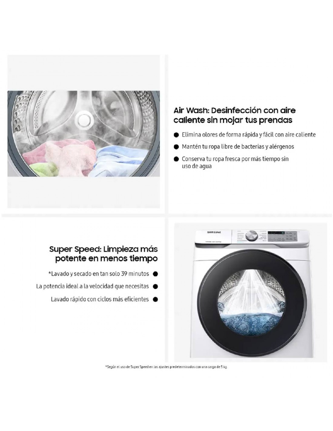 - Modo de energía IA - Super Speed - Lavado con aire - Drum Cleam - Wi fi integrado - Tecnología digital inverter