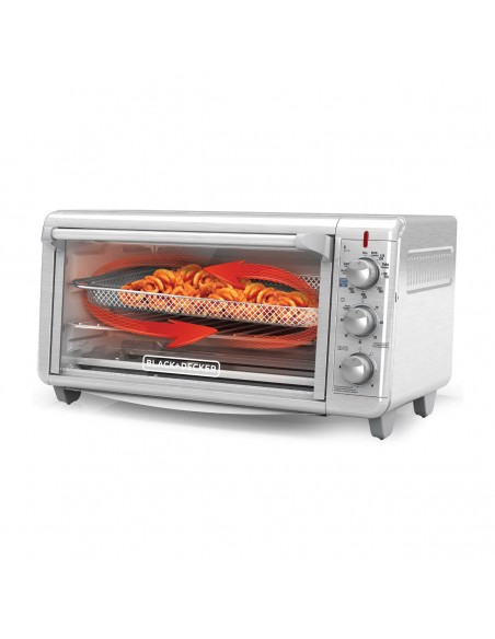 Prepara tus alimentos favoritos sin nada de aceite con el Horno Freidor de Black+Decker. Con 1500 Watts de Potencia, el Horno cuenta con Sistema para Freír con Aire para que disfrutes de tus recetas favoritas sin culpa! Cuenta con sistema de convección para hornear hasta un 20% más rápido que en horno de gas. Además asa y tuesta por lo cual lo hacen una herramienta imprescindible en tu cocina. Tus postres y comidas estarán listos a la hora que quieras sin preocuparte por apagar el horno ya que tiene un práctico temporizador de 60 minutos. Su interior extra amplio es perfecto para hornear una pizza de hasta 30 cm de diámetro.