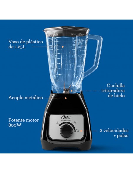 Licuadora Oster 1.25 Lt Control de Perilla Vaso de Plástico y 2 Velocidades más Pulso Negro BLSTKAPBRD