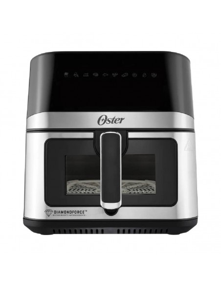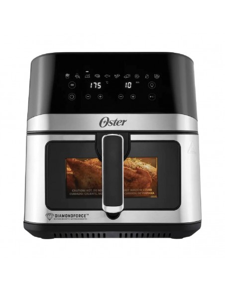 Transforma tu experiencia culinaria con nuestra freidora de aire digital Oster® de última generación. Con nuestro recubrimiento Oster® DiamondForce, que es hasta 12 veces más resistente a rayaduras y hasta 15 veces más fácil de limpiar* que los recubrimientos convencionales, tu freidora se mantendrá en perfectas condiciones durante más tiempo. Su capacidad de 7.5L** permite cocinar un pollo de hasta 3.63Kg. Equipada con una ventana transparente y una luz interna, esta freidora te brinda una visión clara del proceso de cocción en cada paso del proceso. Con 10 Programas automáticos: Papas fritas, alitas, aves, carne, vegetales, pescado/mariscos, hornear, postre, deshidratar y calentar. Esta freidora simplifica la preparación de una variedad de platos con solo tocar un botón.