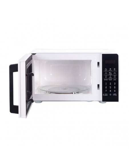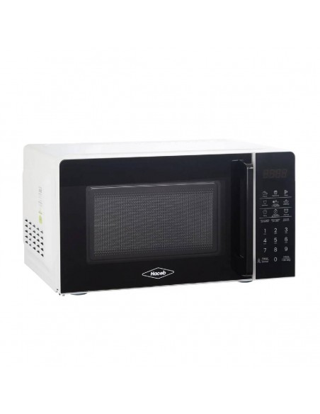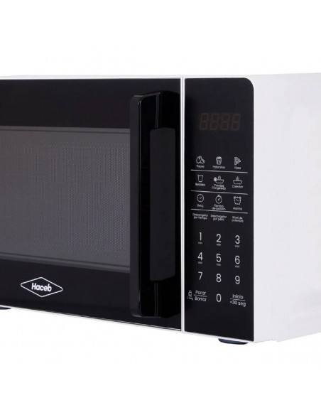Descubre el horno microondas Haceb blanco de 20 litros, ideal para cocinar, calentar y descongelar con rapidez y eficiencia. Su diseño moderno con manija externa integrada combina estilo y funcionalidad en cualquier cocina. Disfruta de una cocción uniforme gracias a su plato giratorio y potencia de 700 W, que distribuye el calor de forma pareja. Incluye 12 programas automáticos con recetas como palomitas, pizza, papas y más, además de una práctica función descongelar por tiempo o peso. Su interior cuenta con protección anti-salpicaduras para una limpieza sencilla y una ventanilla de visualización para monitorear tus preparaciones. Compacto, eficiente y multifuncional, el microondas Haceb es la solución perfecta para tu cocina.