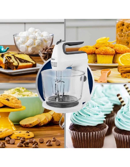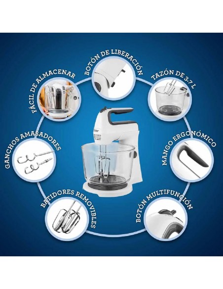 - Diseño ergónomico - Función Turbo - Batidora 2 en 1 -Botón multifunción - Incluye Taza y Ganchos Amasadore