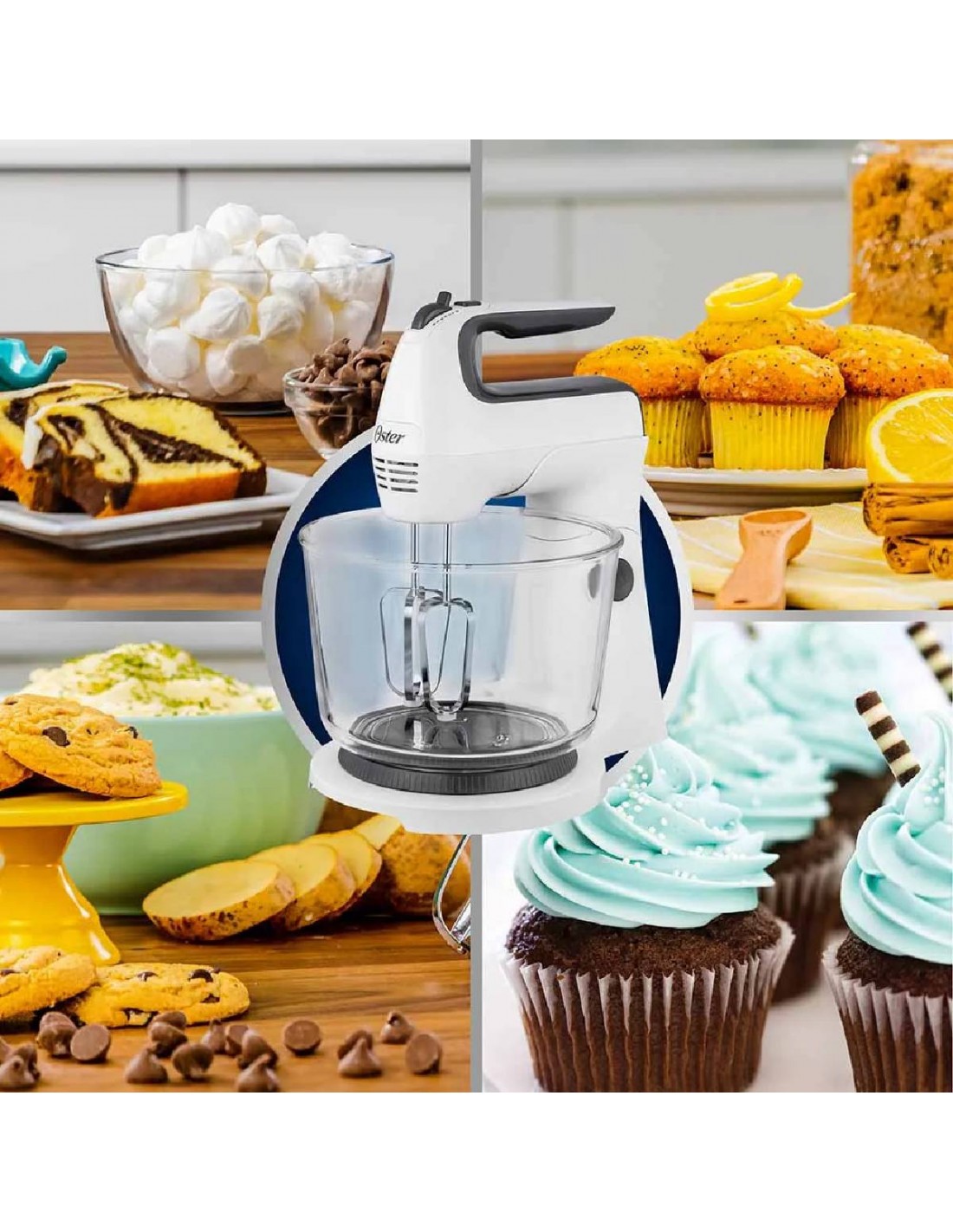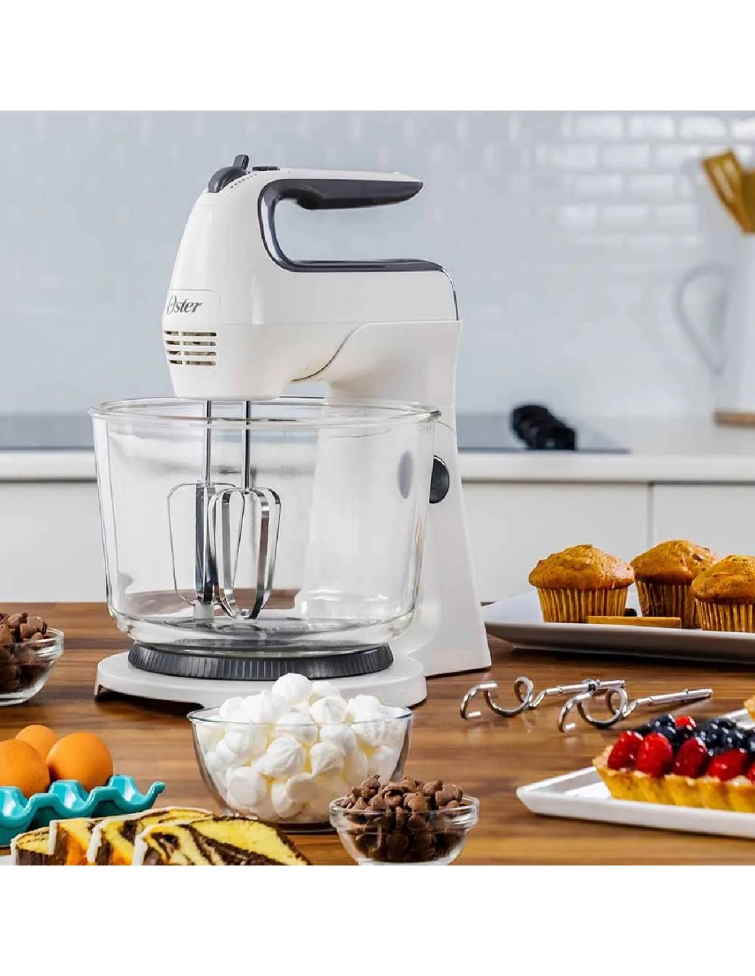 Batidora de Mano y Pedestal Oster Tazón de Vidrio 6 Velocidades Blanca FPSTHS3611