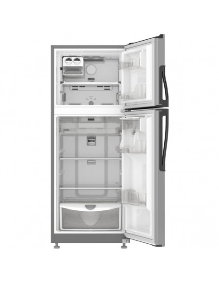 Cuenta con dispensador de agua exterior, sistema de deshielo, luz Led, compartimiento extra frío y cajón para frutas y verduras con control de humedad. Tecnología 3D de distribución de aire que mantiene los alimentos frescos por más tiempo.