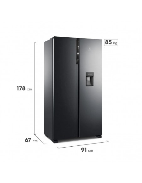 El Nevecon Electrolux Side by Side No Frost Inverter 528 Litros Negro | ERSA53K3HVB te permitirá tener Alimentos siempre frescos con más espacio y menos desperdicios.