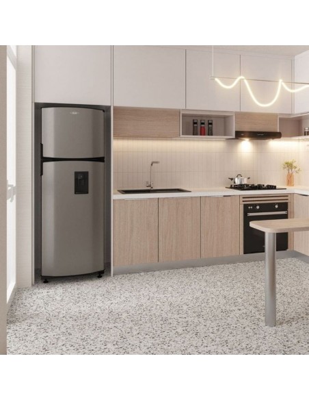 Nevera Haceb titanio con manija integrada de 243 litros brutos, diseñada para alargar la vida de tus alimentos, única con sistema de conservación Himalaya de 5 componentes: frio sectorizado y estable en cada zona, corrientes de frio óptimas, separador de frutas y verduras* y compartimiento extra-frio. Cuenta con iluminación tipo LED de gran alcance para mayor visual y menos sombras, amplio espacio interior con distribución modular para que ordenar sea un placer y un novedoso fabricador de hielo que te entrega hielos grandes y fáciles de sacar, disfruta tus bebidas frías por más tiempo. ¡Garantía de 10 años en el compresor! *Aplica en referencias seleccionadas