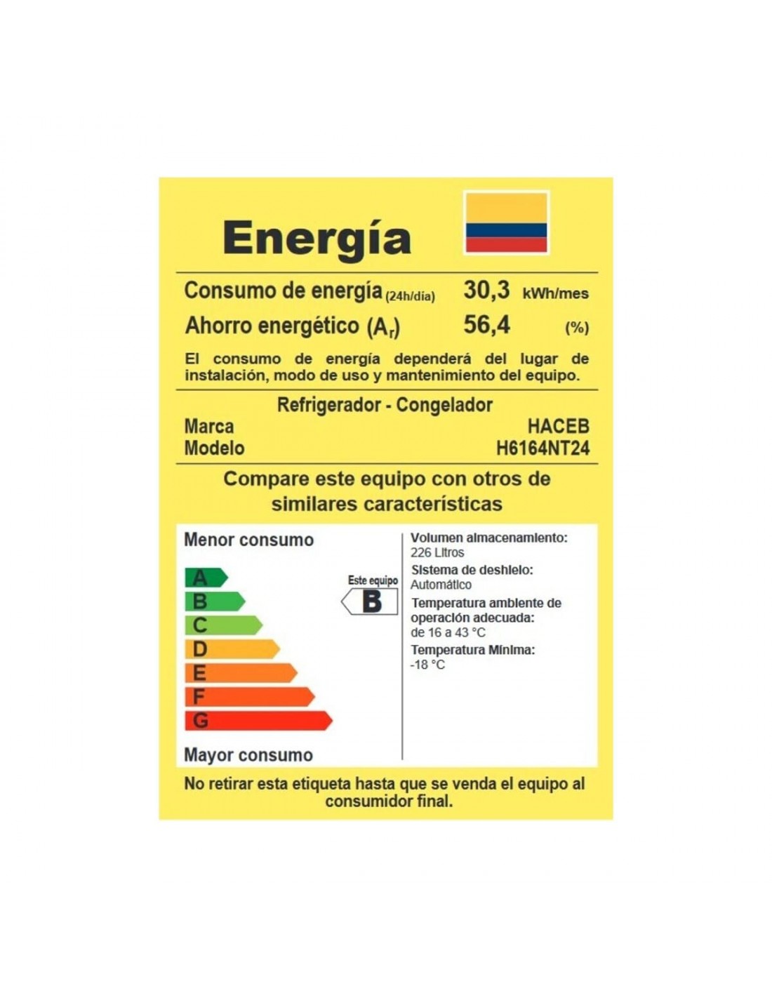 Nevera Haceb con manija integrada de 243 litros brutos, color intenso, pigmentos metalizados, diseñada para alargar la vida de tus alimentos, única con sistema de conservación Himalaya de 5 componentes: frio sectorizado y estable en cada zona, corrientes de frio óptimas, control de humedad en bandeja de frutas y verduras, y compartimiento extra-frio. Cuenta con iluminación tipo LED de gran alcance para mayor visual y menos sombras, amplio espacio interior con distribución modular para que ordenar sea un placer y un novedoso fabricador de hielo que te entrega hielos grandes y fáciles de sacar, disfruta tus bebidas frías por más tiempo. ¡Garantía de 10 años en el compresor!