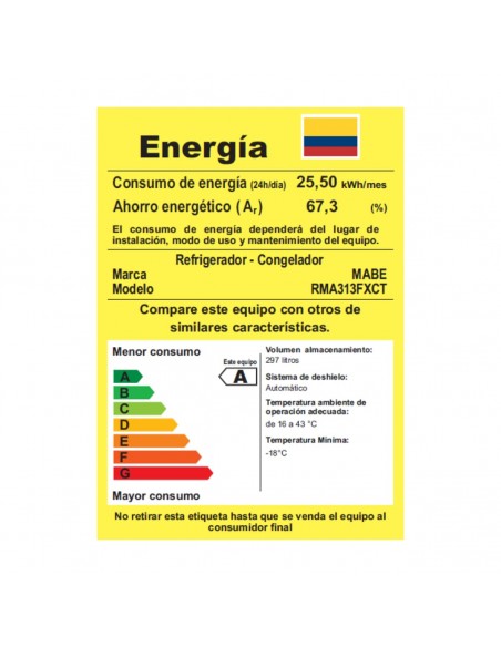 La Nevera Mabe No Frost 313 Litros Congelador Superior Gris | RMA313FXCT te da tranquilidad. Ahorra hasta un 67% de energía con el compresor Eco Advance y gas refrigerante R600. Cuida tu bolsillo con componentes de alta eficiencia que maximizan el ahorro de energía. Te da más frescura con el sistema Total Fresh Flow, mejora la distribución del aire y la conservación de tus alimentos. Te da más espacios inteligentes que permiten organizar con facilidad todo tipo de bebidas y recipientes.