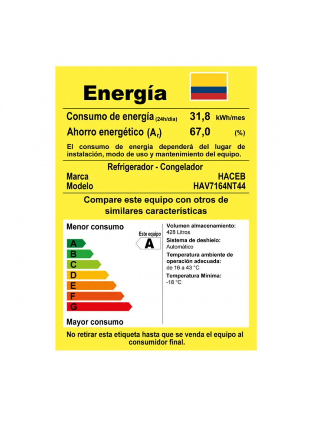 Nevera HACEB 448 litros brutos, color negro cósmico, con la función Smart Pro asegura la conservación al menor consumo de energía, aprovecha el resto de funciones inteligentes: mercado, vacaciones y enfríamiento rápido. Además, alarga la vida de los alimentos y consérvalos frescos con el sistema de conservación Haceb Himalaya. Cuenta con amplio espacio interior, altura variable. Disfruta de agua fría con el dispensador de agua de 3 litros y evita goteos con la válvula de cierre instantáneo. Servicio y respaldo únicos de Haceb ¡10 años de garantía en el compresor!