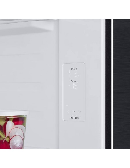 Este refrigerador Side-by-Side de Samsung con tecnología SpaceMax™ ofrece un amplio espacio de almacenamiento de 578 litros, aprovechando al máximo su interior sin comprometer las dimensiones externas. Su compresor Inverter con AI ajusta la velocidad para optimizar el consumo energético y garantizar frescura constante, además de contar con una garantía de 20 años. El modo AI Energy reduce el consumo de energía hasta un 10% y se puede controlar a través de la app SmartThings.