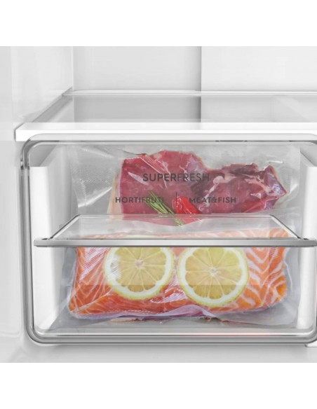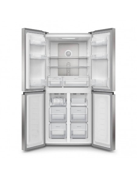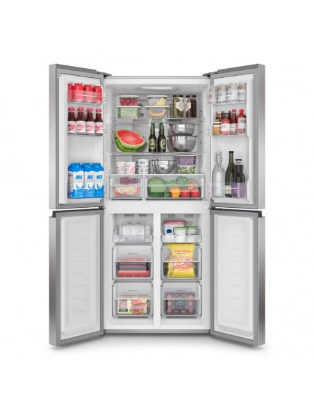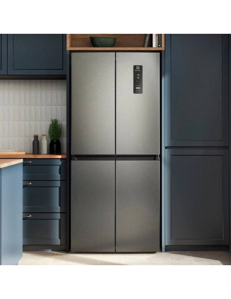 Nevecón Electrolux ERQU40E3HWS Multidoor 421L Inox | Tecnología AutoSense e Inverter Organiza tus alimentos de forma eficiente y mantén su frescura por más tiempo con el nevecón Electrolux ERQU40E3HWS de 421 litros. Su innovador sistema AutoSense con inteligencia artificial ajusta automáticamente la temperatura, prolongando la vida útil de los alimentos hasta un 30 %*. Su diseño Multidoor de cuatro puertas permite acceder solo al compartimiento necesario, minimizando la pérdida de frío. Incluye el cajón SuperFresh, ideal para carnes, frutas y verduras, gracias a su control de temperatura ajustable. Disfruta de hielo al instante con el práctico Ice Twister y ahorra energía con la tecnología Inverter, que reduce el consumo y el ruido. Cuenta con panel digital, alarma de puertas, estantes extraíbles, ruedas para fácil desplazamiento y una capacidad total de 421 L (271 L refrigerador + 150 L congelador). Su elegante acabado color silver y garantía de 10 años en el compresor hacen de este nevecón la mejor opción para tu cocina.